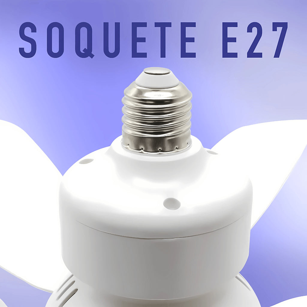 Ventilador de Teto E27 com Lâmpada LED Ajustável – 60W Bivolt Branco